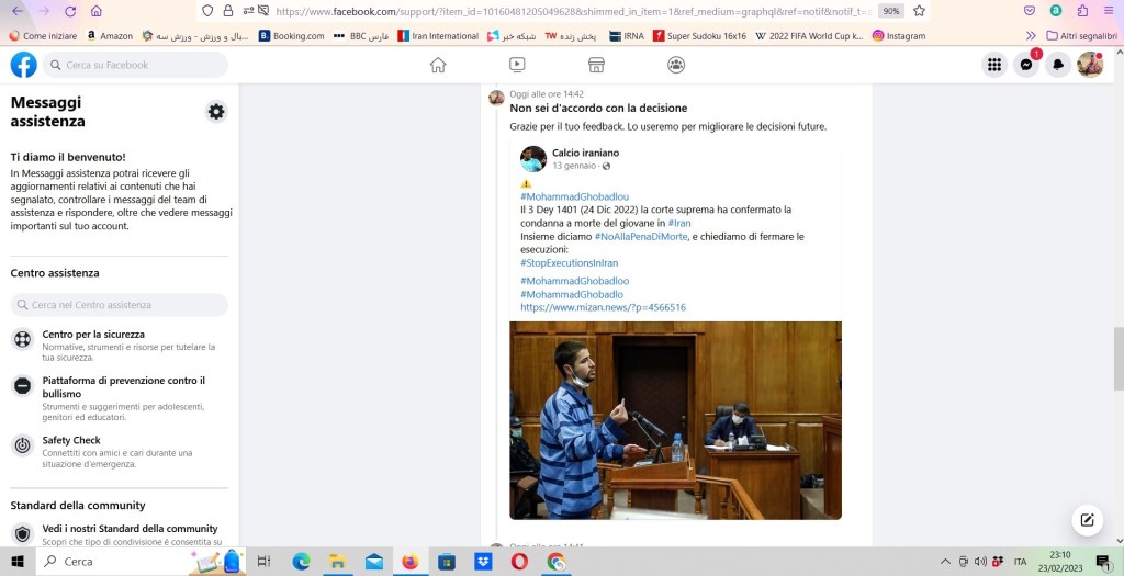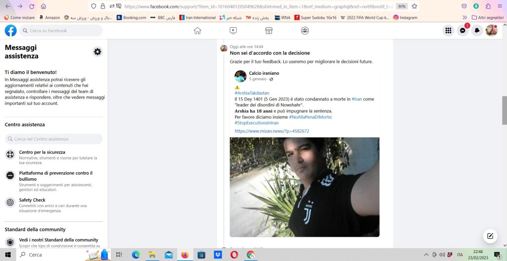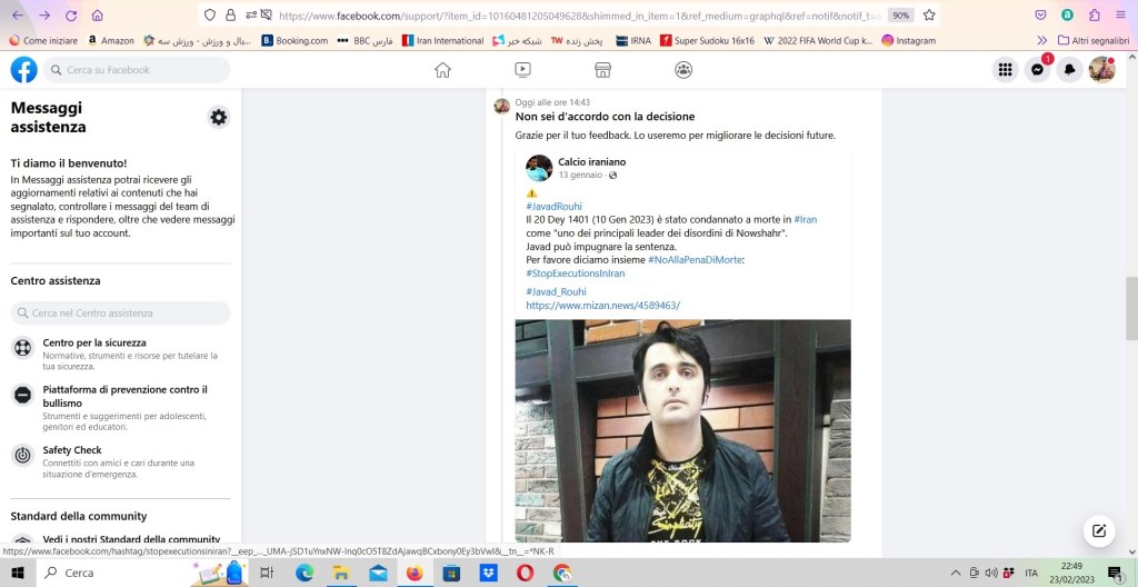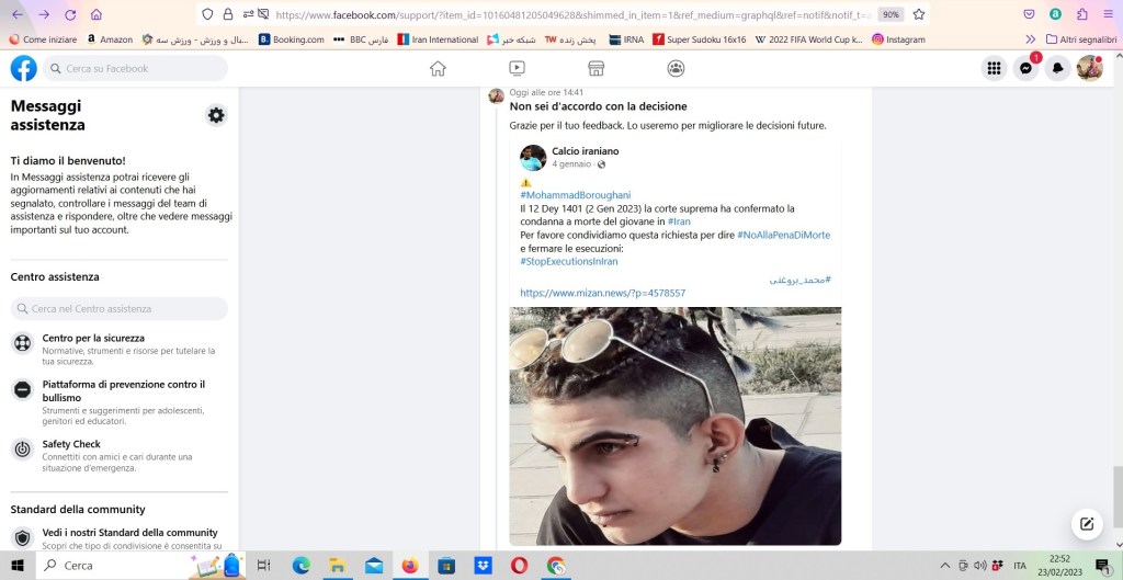 Secondo Facebook i miei post sono stati oscurati per violazione degli Standard della community. Così sono andato a rivederli uno per uno, e si trattava degli appelli contro la pena di morte in #Iran a seguito delle manifestazioni scaturite dalla morte di Mahsa Amini.